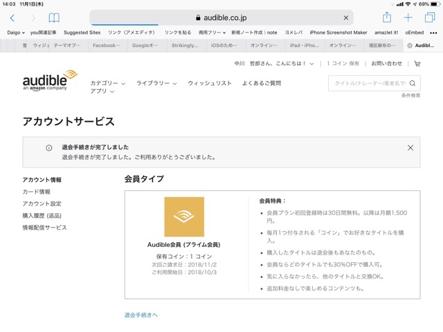 ここで、退会理由を選びます。「聴き放題」がよかったなー。