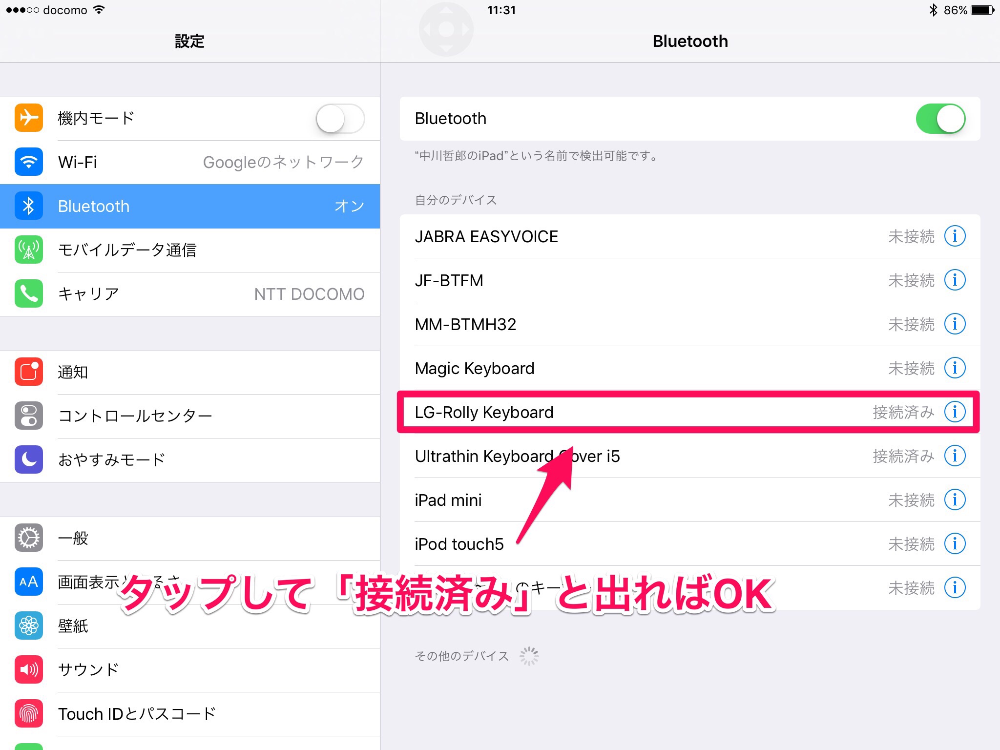 これで、キーボードとiPadが接続されました!