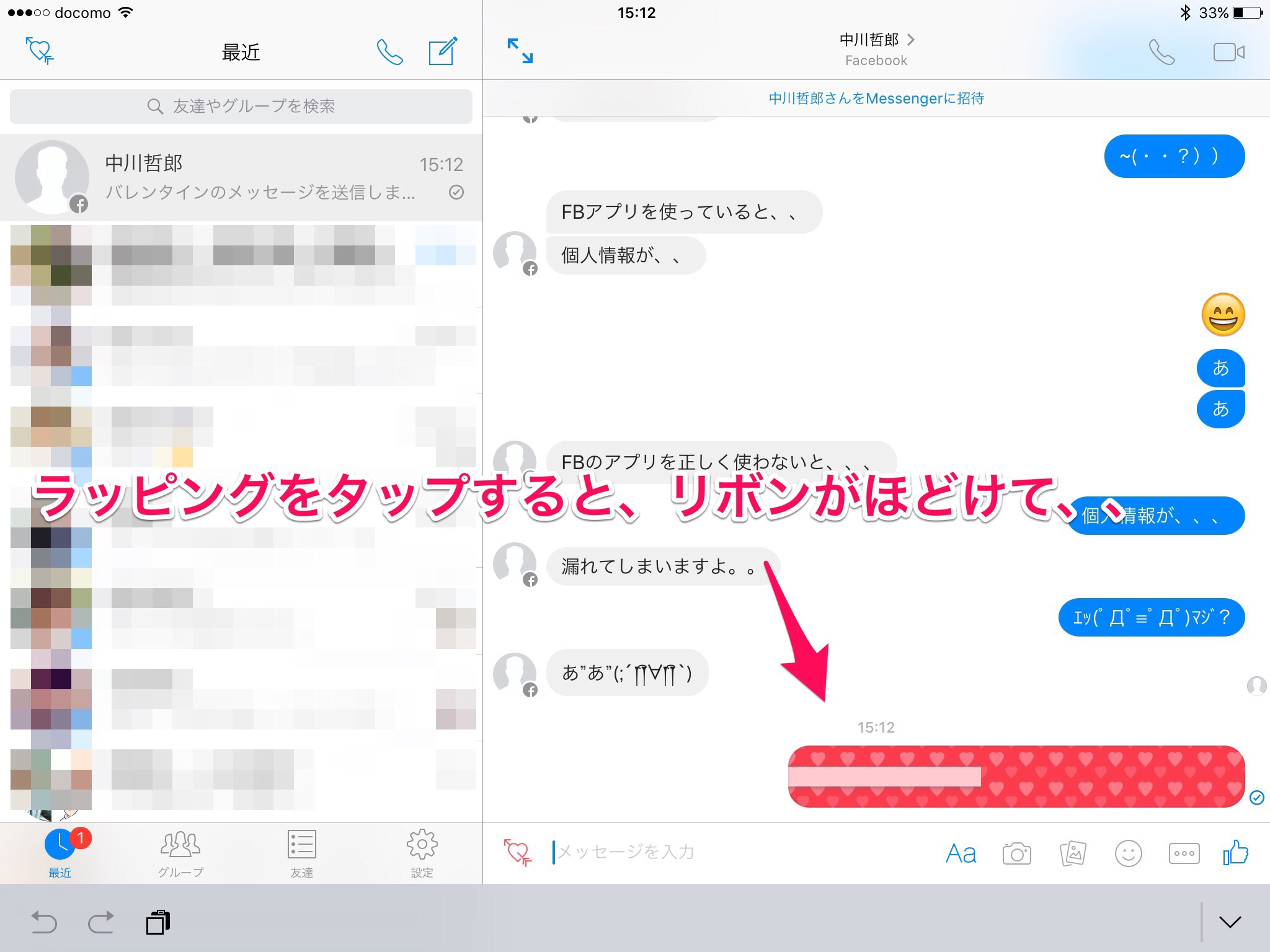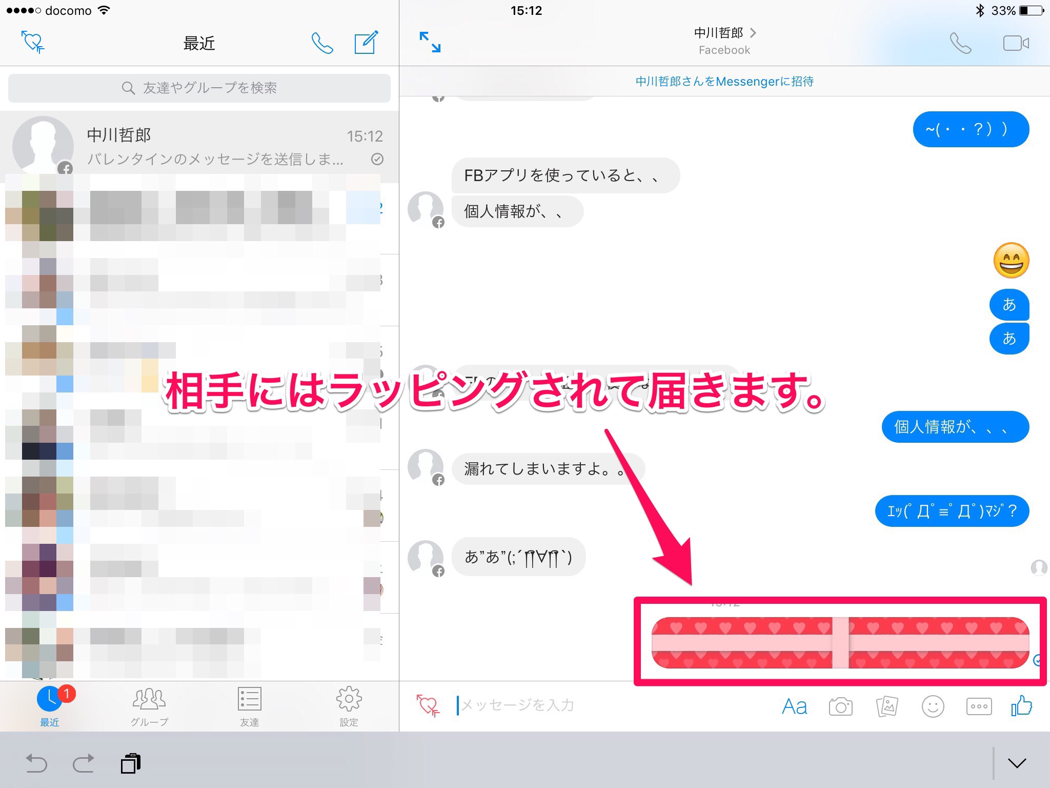 バレンタインデー限定(だと思う)Facebookメッセージのギフトラッピングの使い方