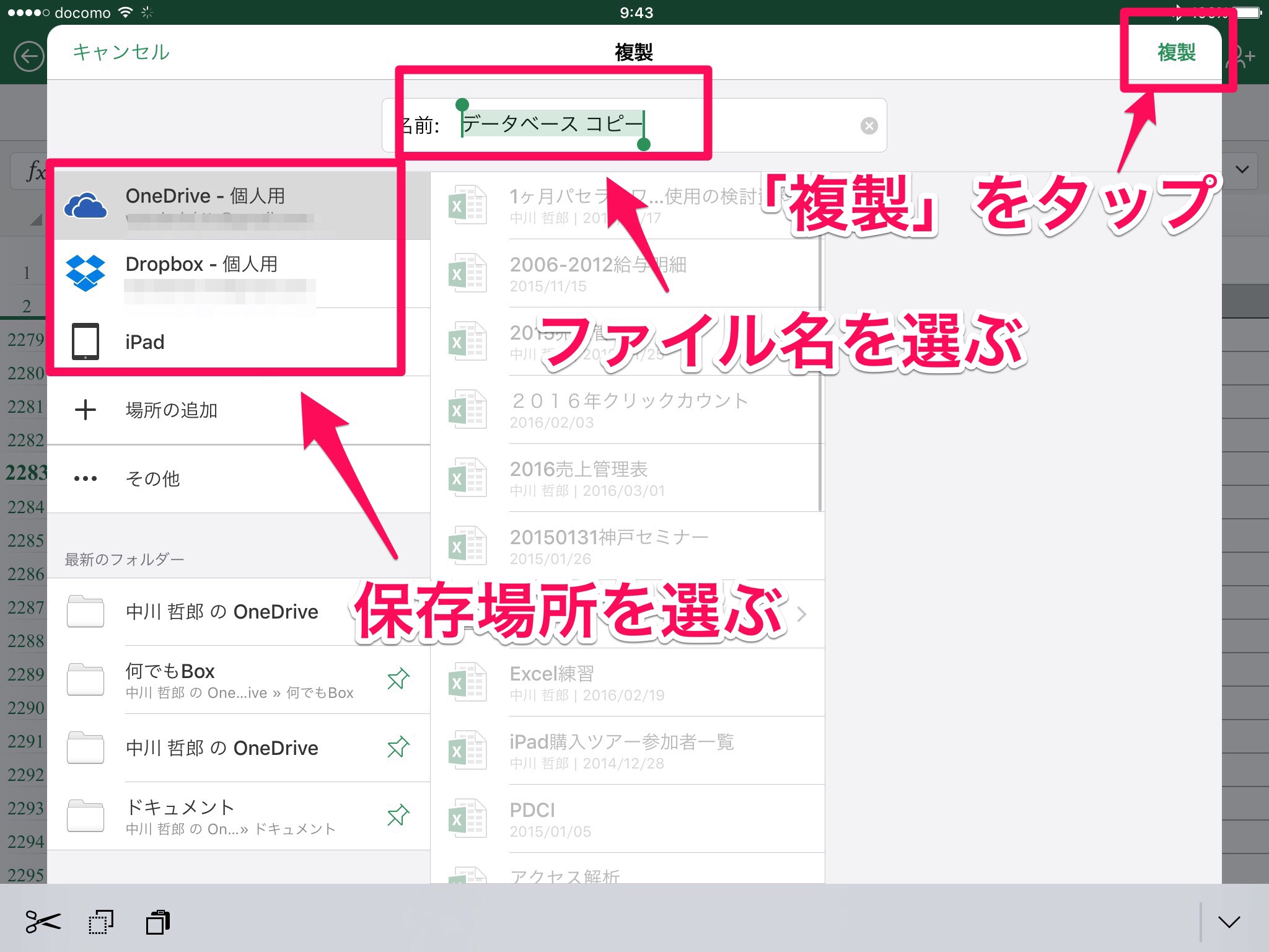 iPad版Excelの使い方、Excelファイルをコピーする方法