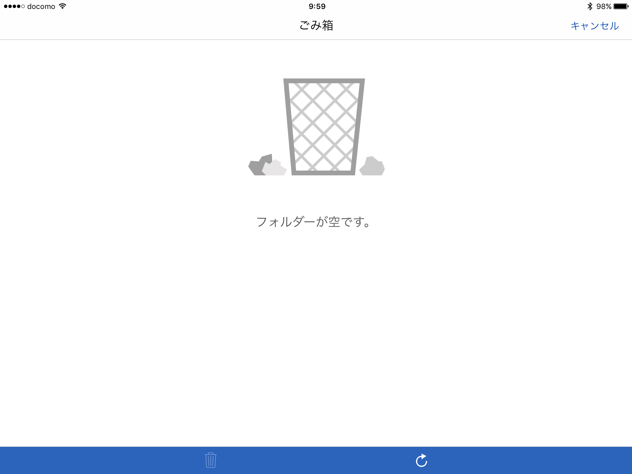 右上の「…」をタップして「ゴミ箱を開く」をタップ。
