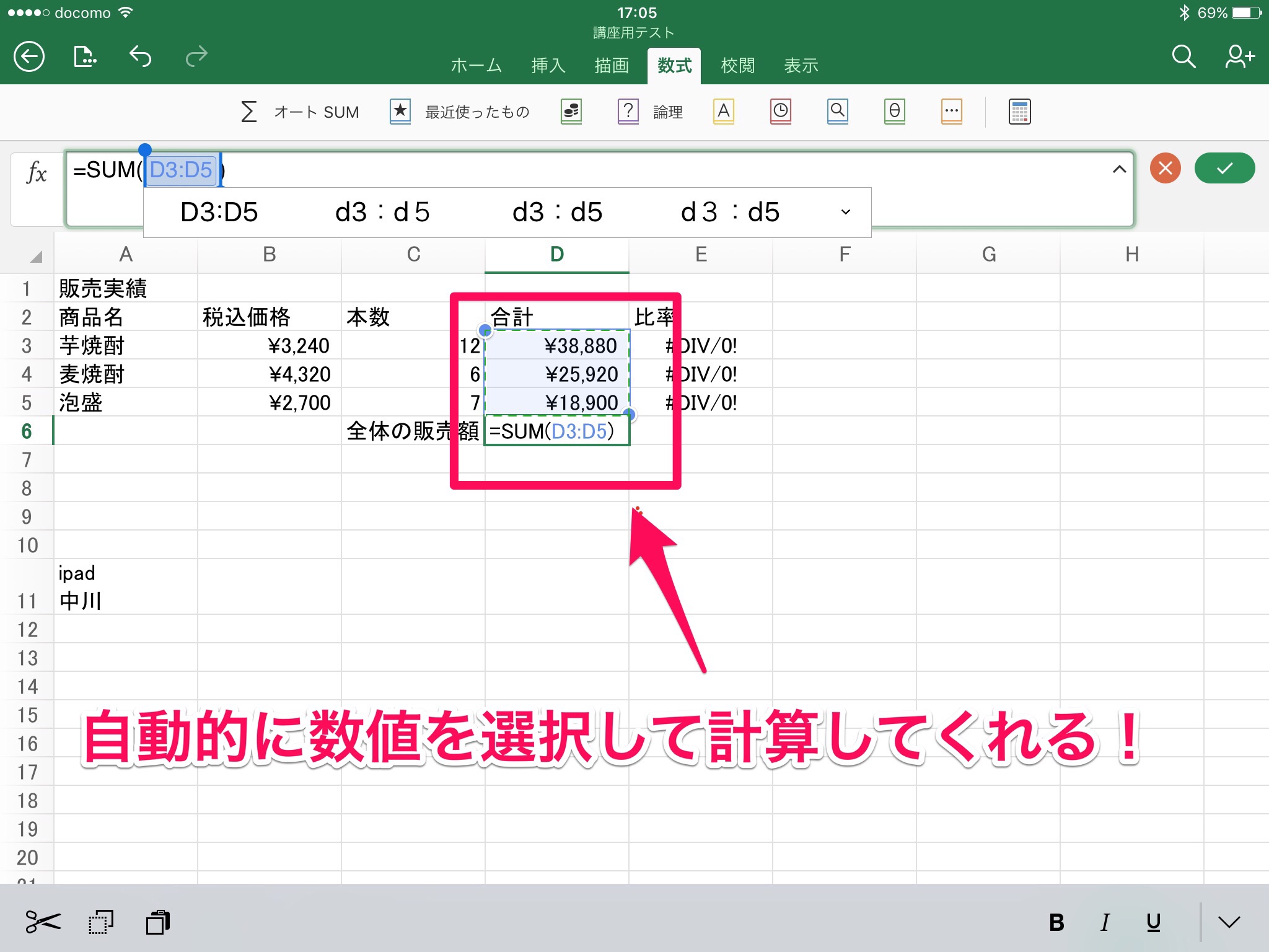 iPadでもパソコンでも、カンタンExcelの使い方。関数を入力するコツ