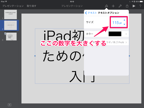 僕がKeynoteを使っていて、つまづいたのが文字サイズの変更方法です。