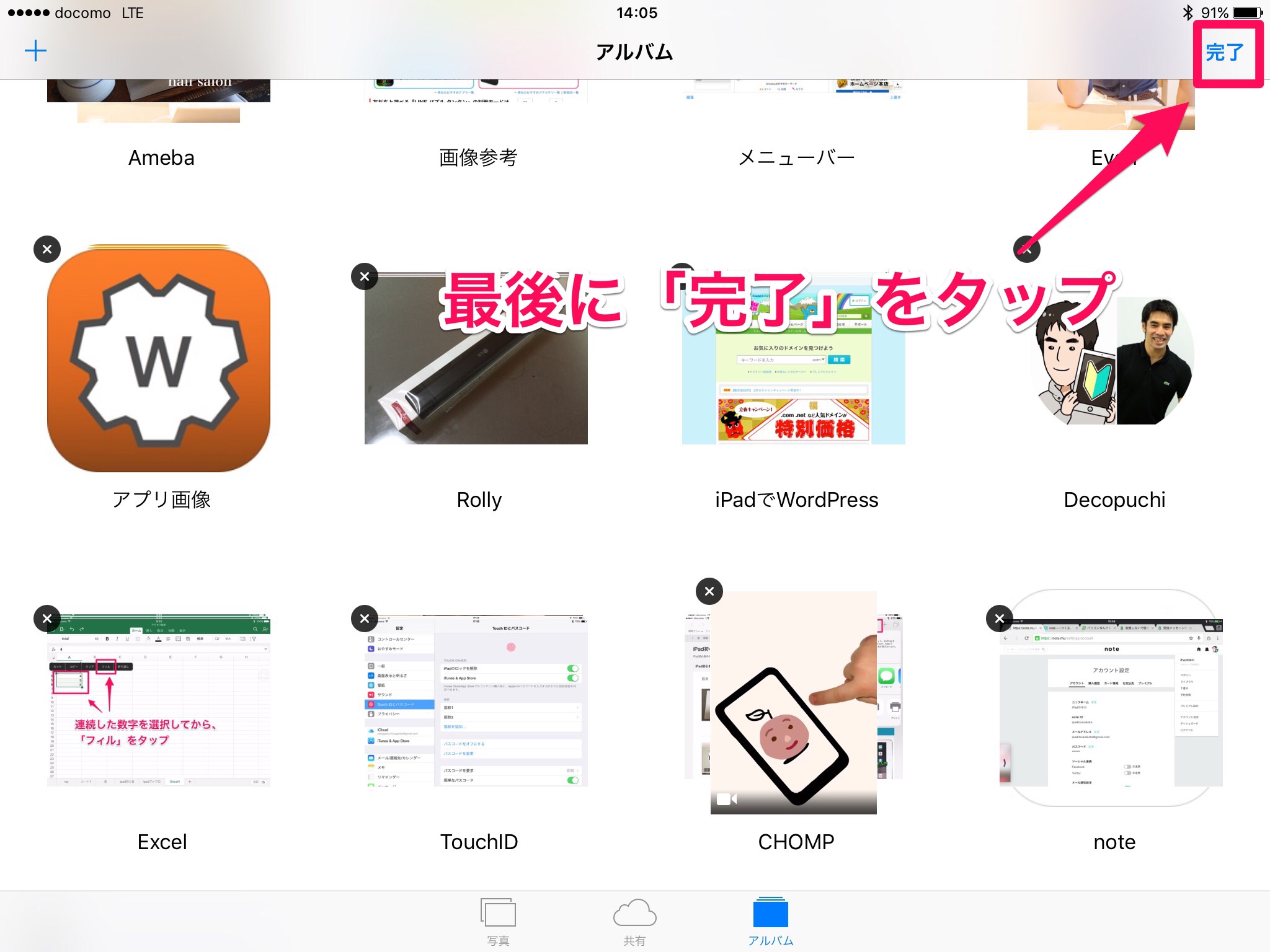 すると、作ったアルバムの左肩に「x」がつきますので、これをタップ。