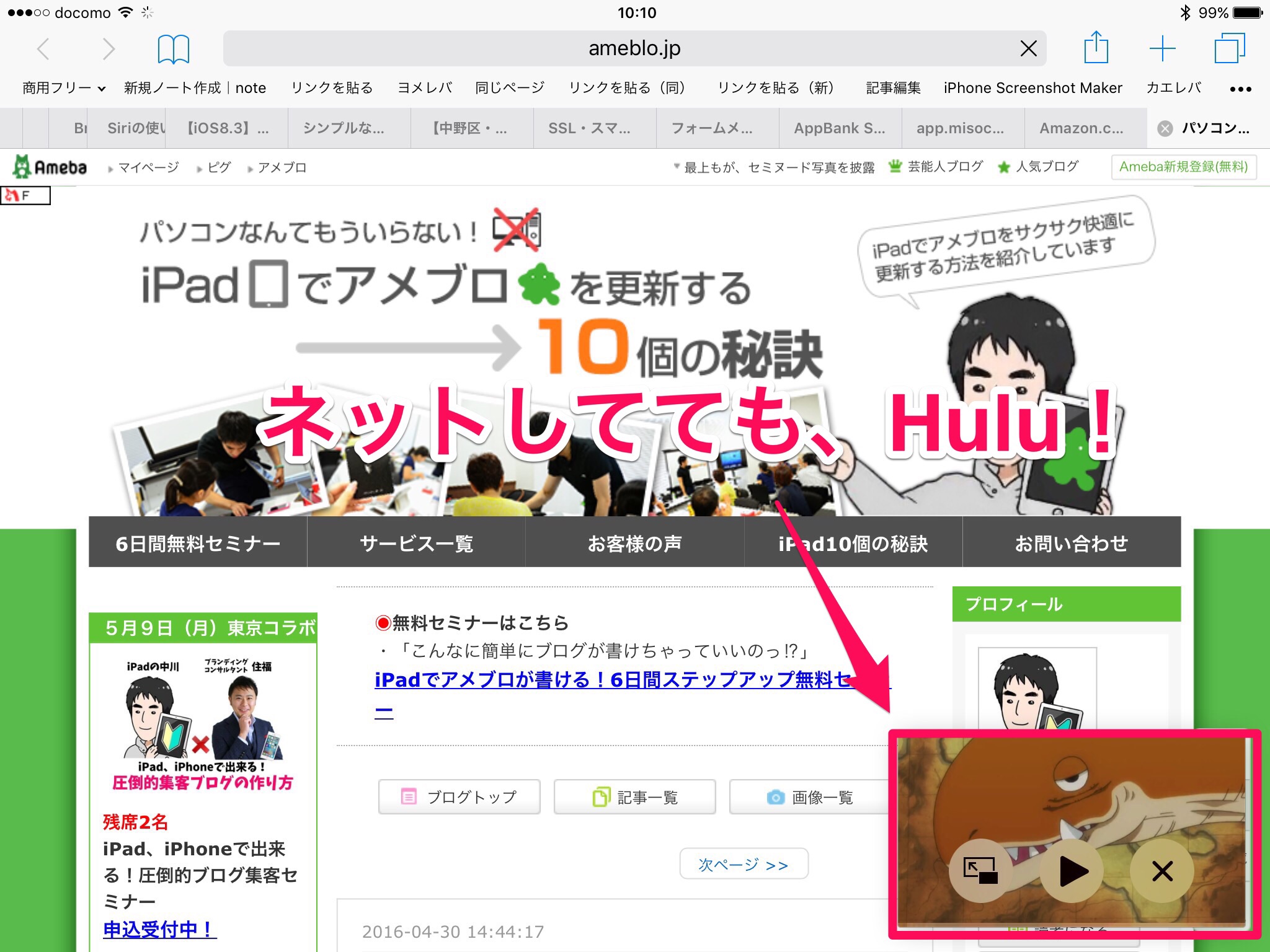 Huluを、小画面(ピクチャ・イン・ピクチャ)で見る方法