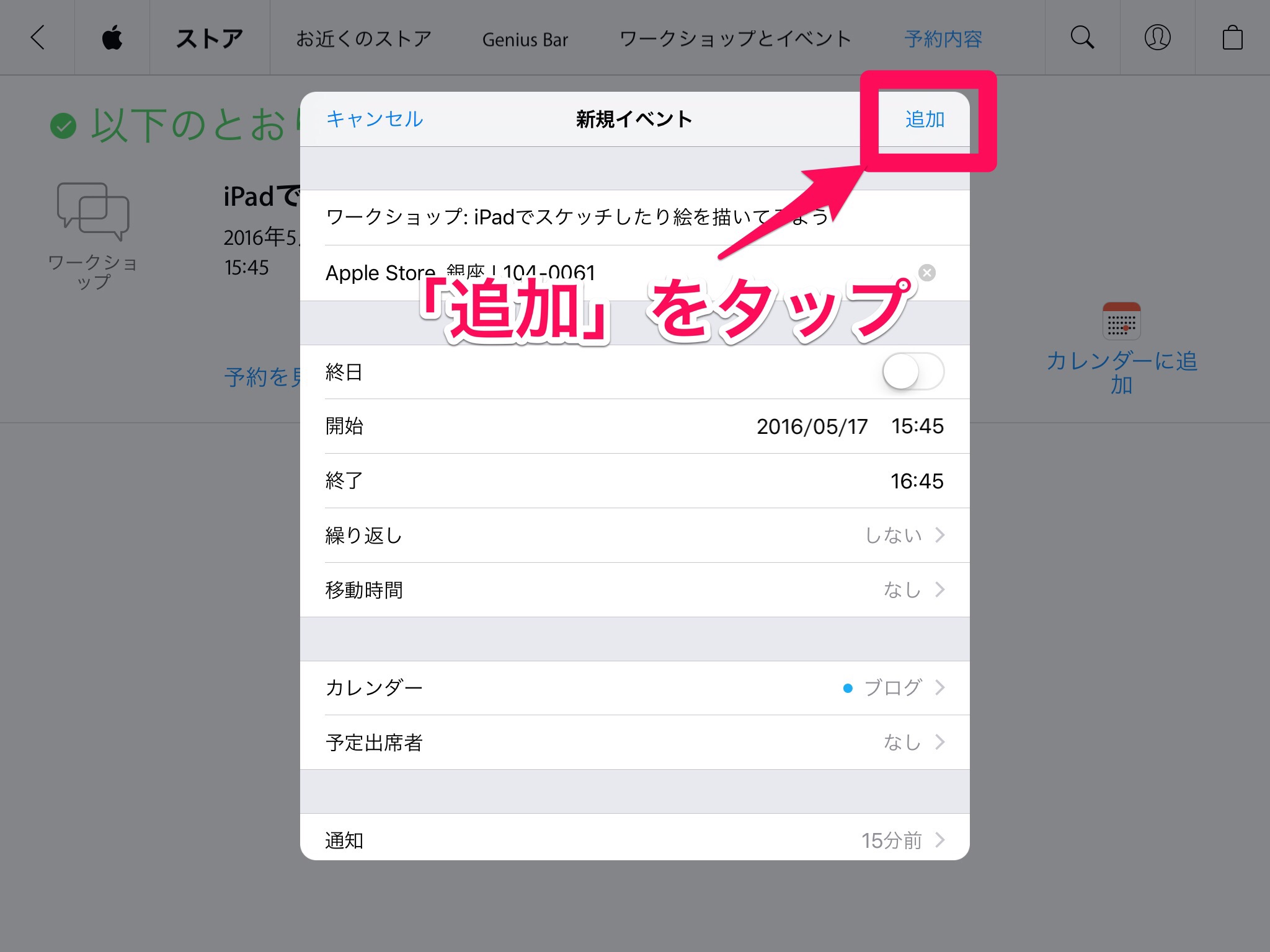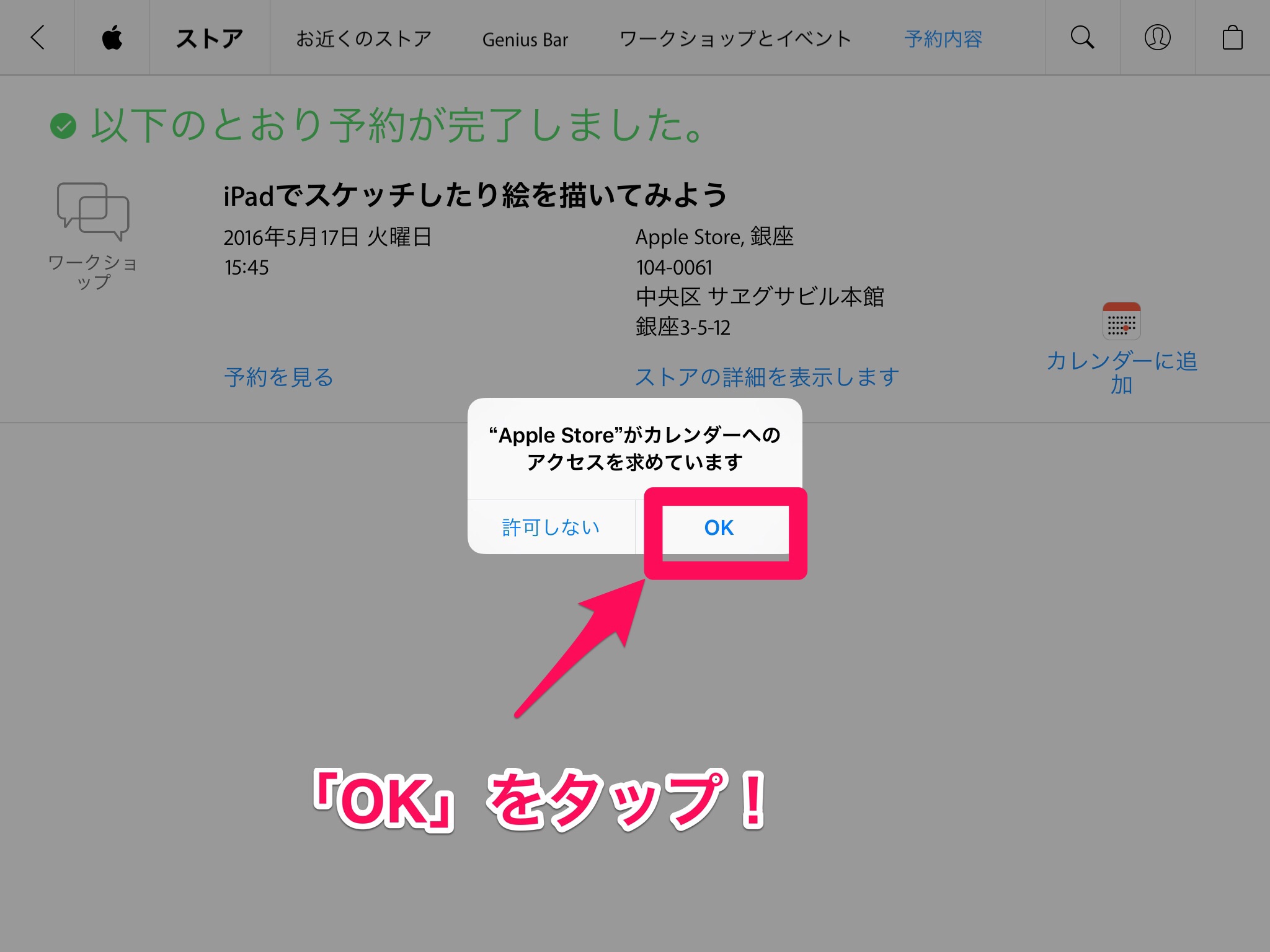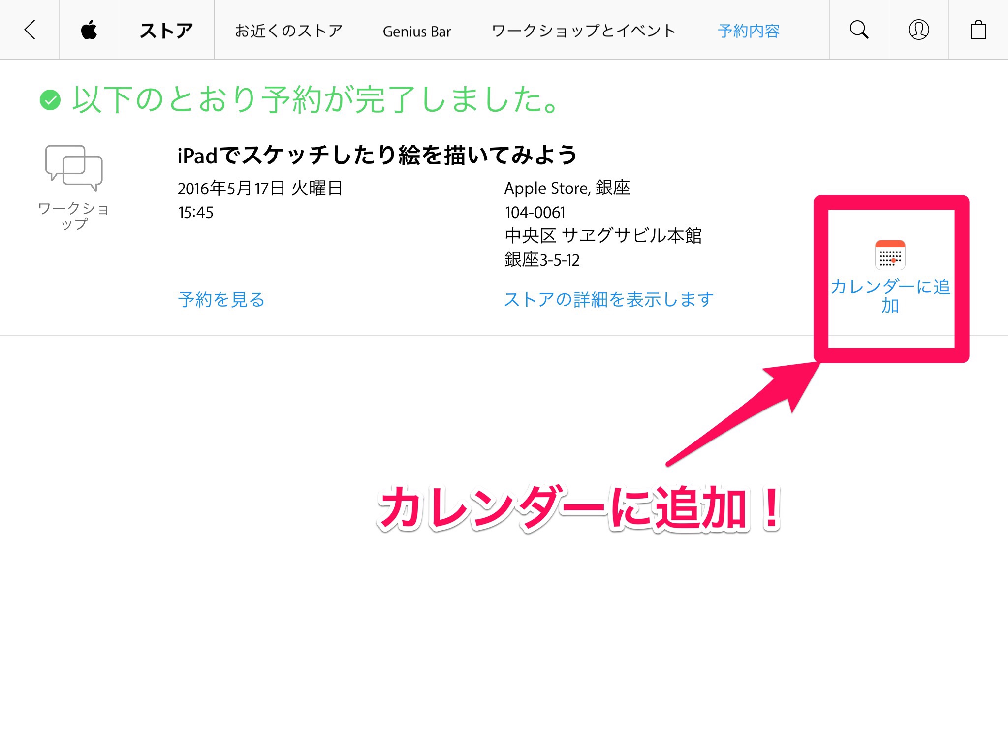 これで、予約完了です!ついでにカレンダーに予定を追加しましょう。