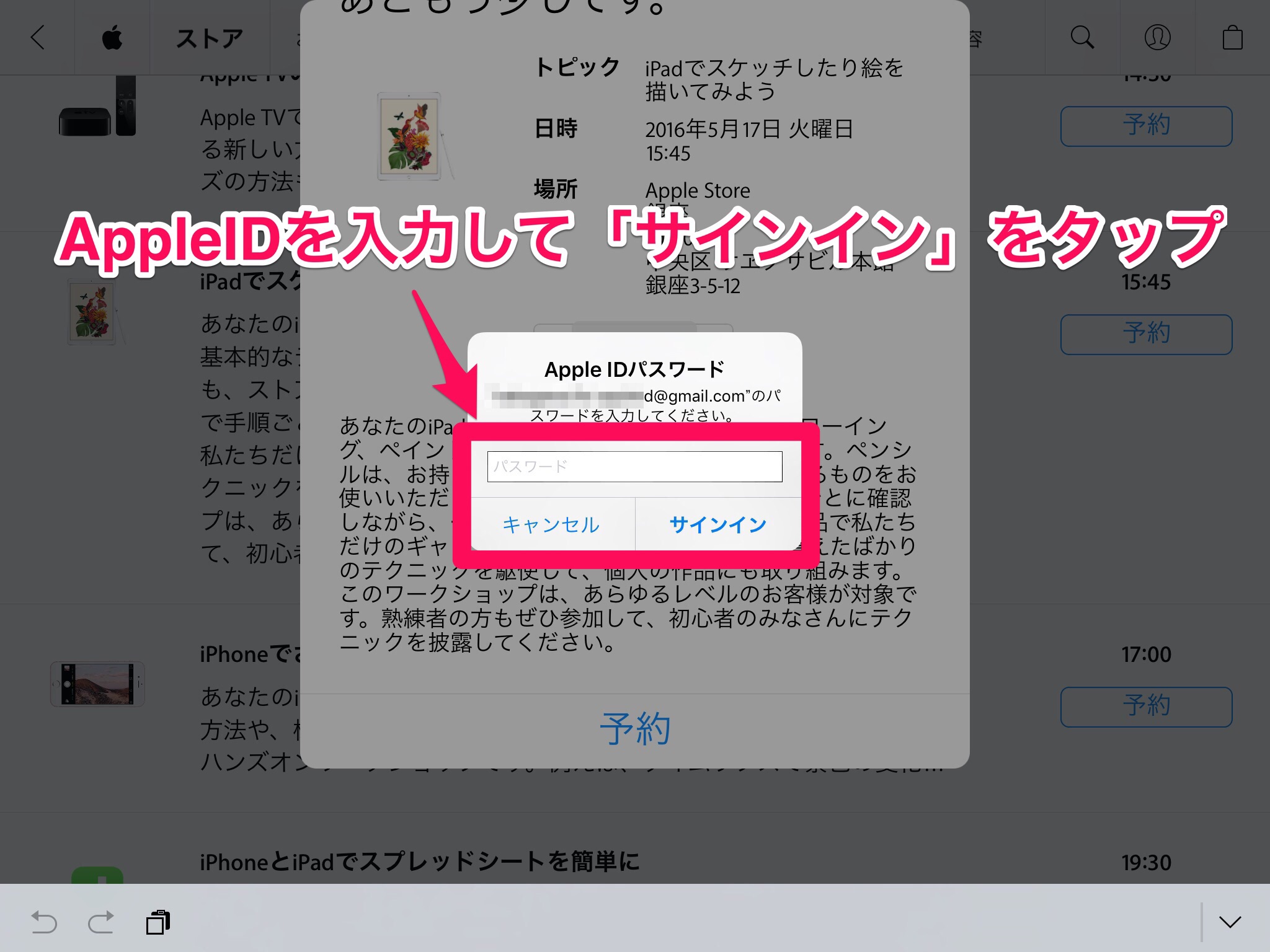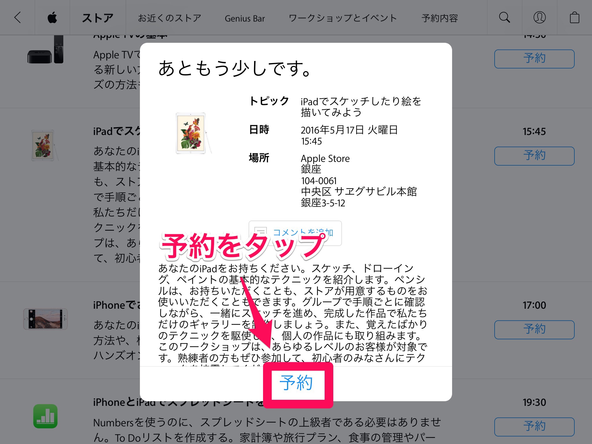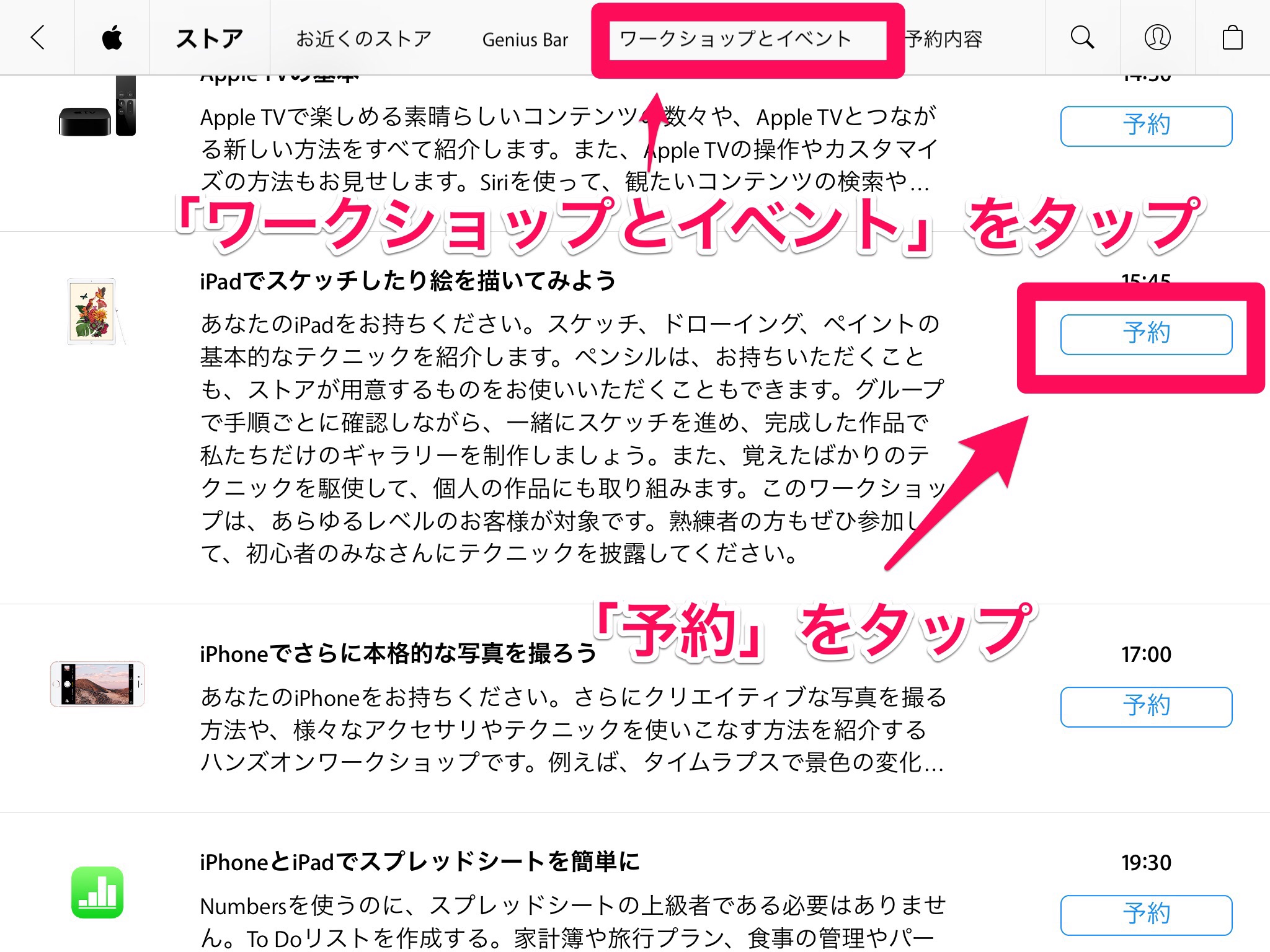 AppleStoreアプリを使って、銀座AppleStoreのワークショップを予約する方法