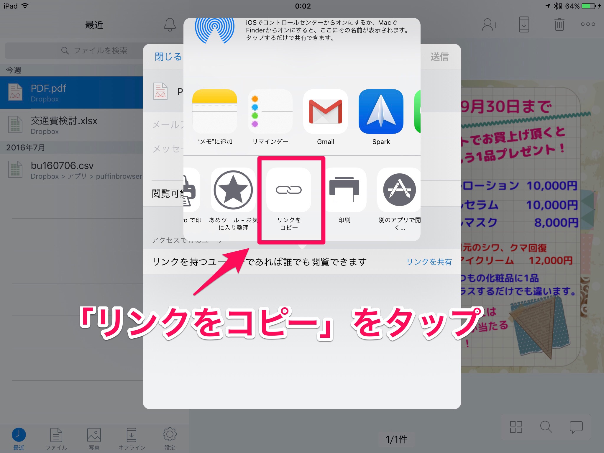 タップしてリンクをコピーして、メールやメモに貼り付けましょう( ー`дー´)キリッ