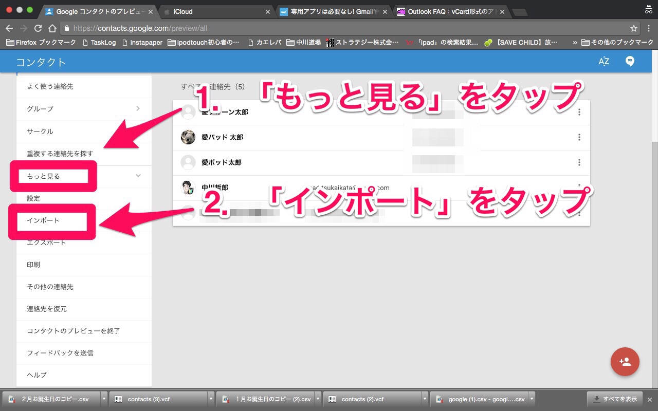 必要な箇所だけ書き換えたら、Google連絡先に読み込ませます。