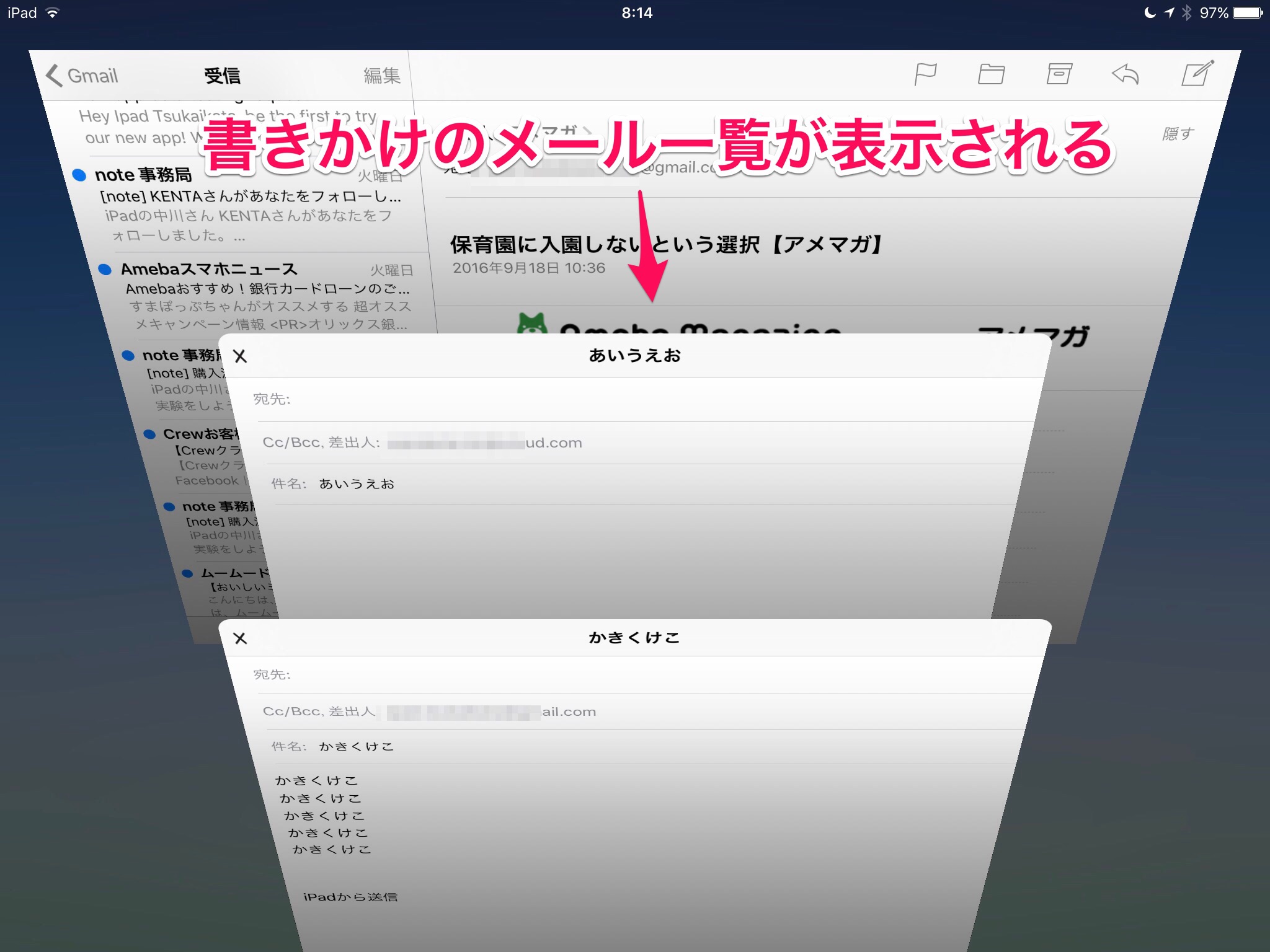それによって、複数のメールを並行して書く進める事が可能になります。
