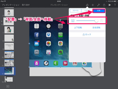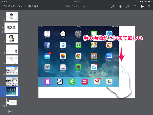 僕の場合は、iPadの画像は一番底にあってほしいので、そこをタップします。