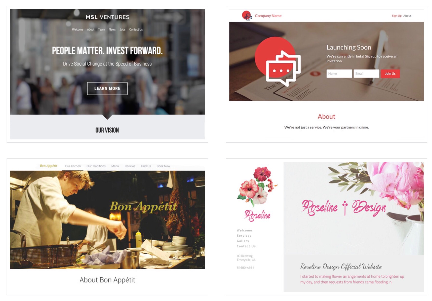 >>Strikinglyのサイトからもテンプレートを使ったHP作成例をご覧いただけますよ!