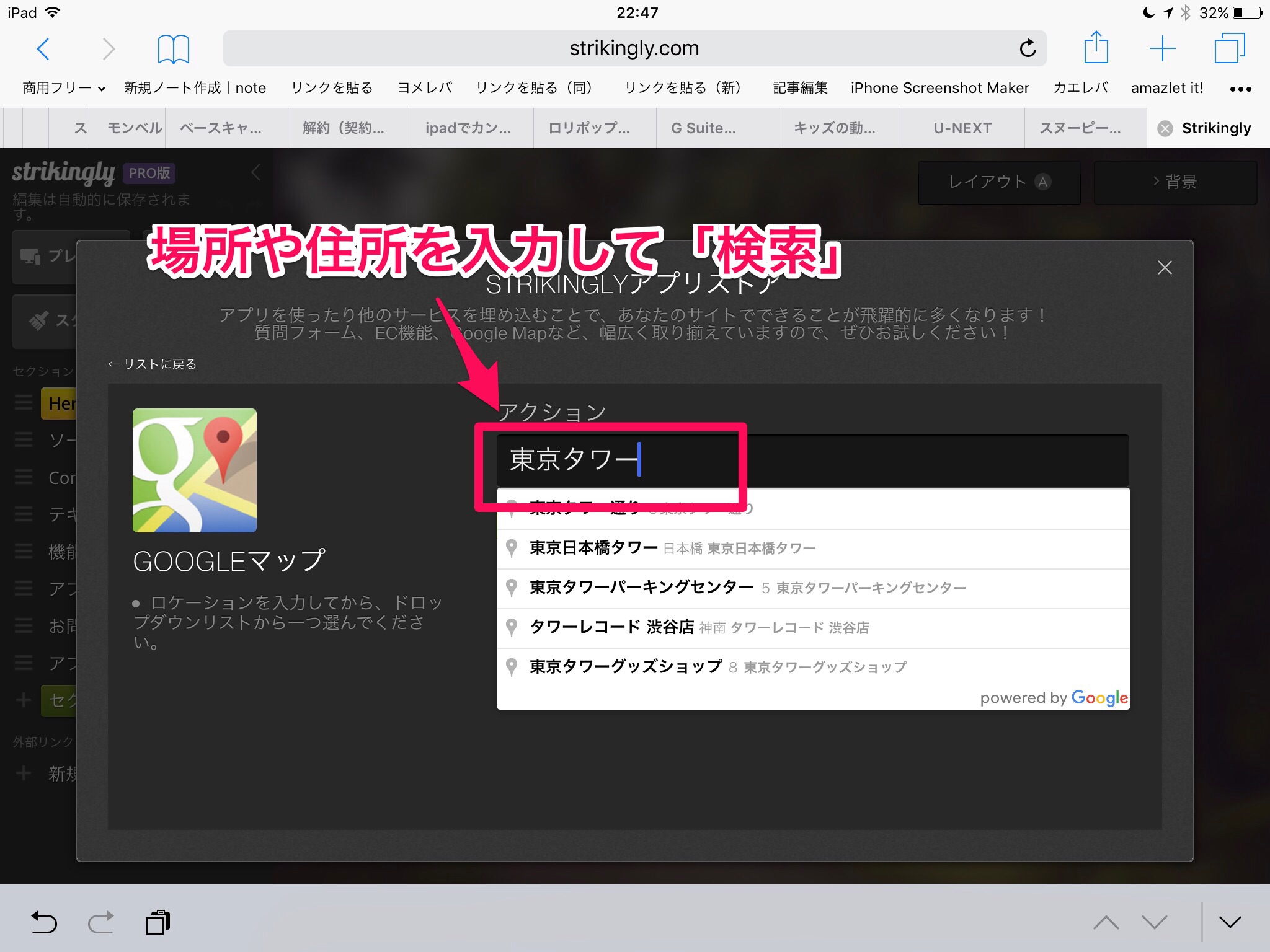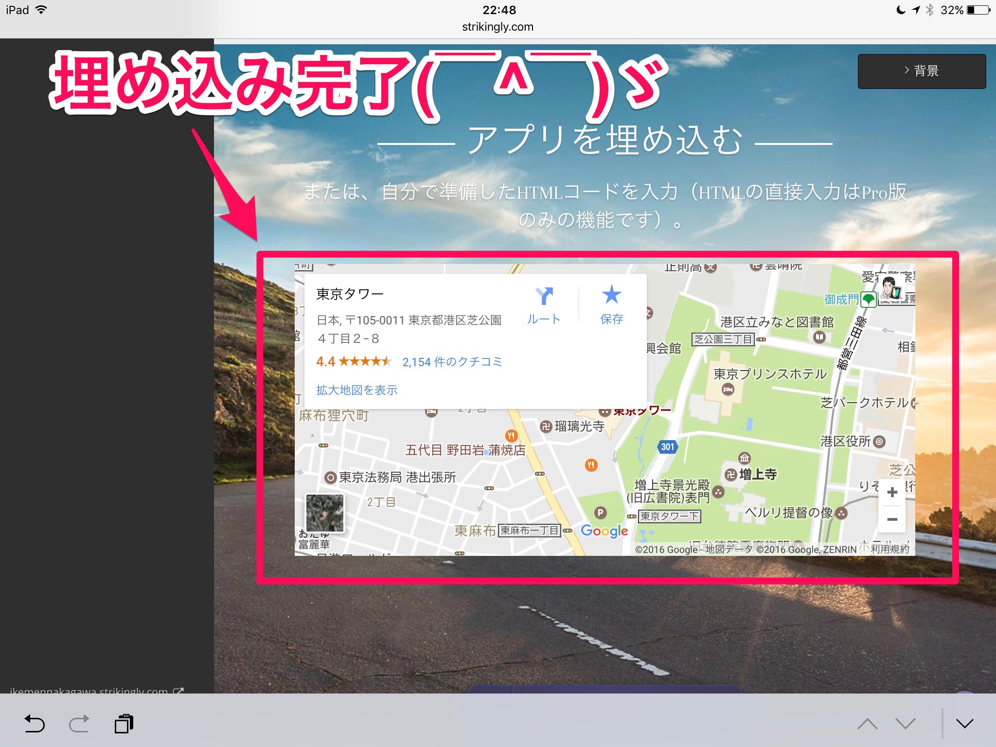 Strikinglyの使い方!HP(ホームページ)にGoogleマップを埋め込む方法