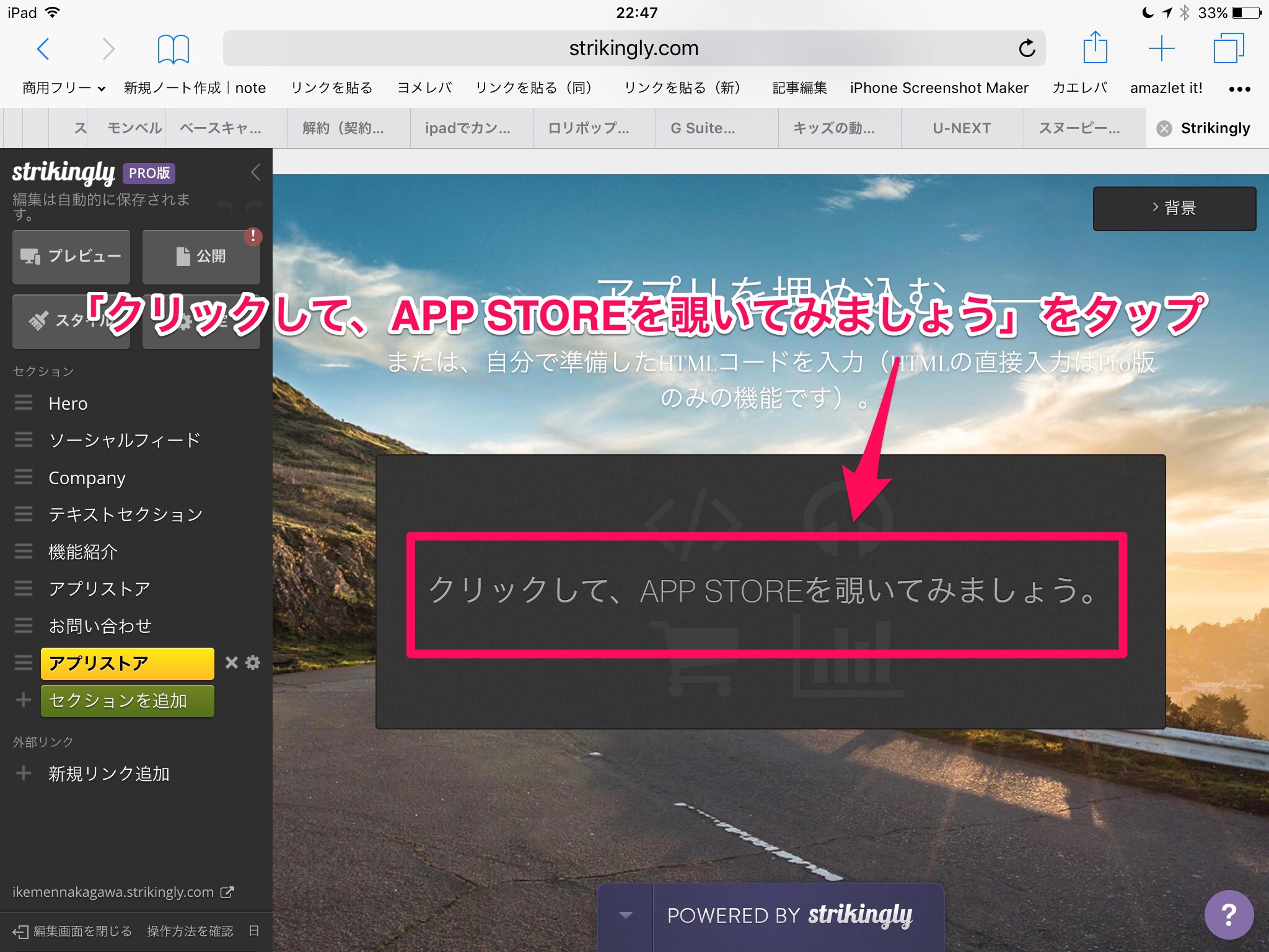 SafariからStrikinglyにアクセスすると、使えるセクションが増えるのです( ̄ー ̄)ニヤリッ
