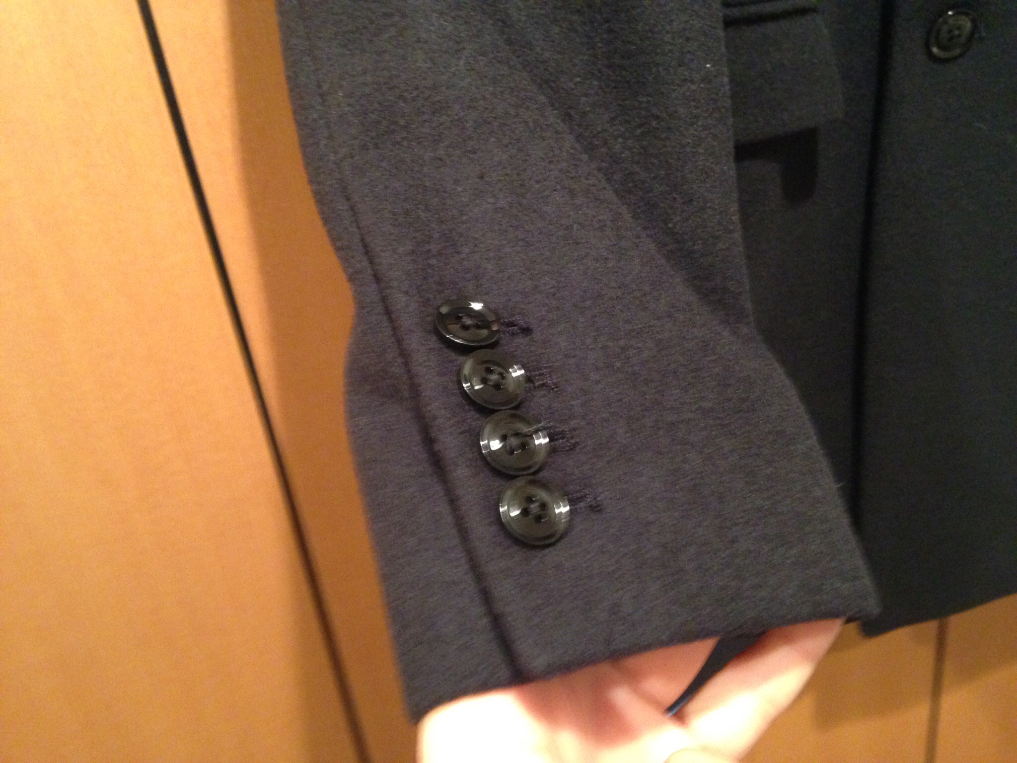 袖のボタンは4つ。ここは、開かないので「開き見せ」仕様になっております。