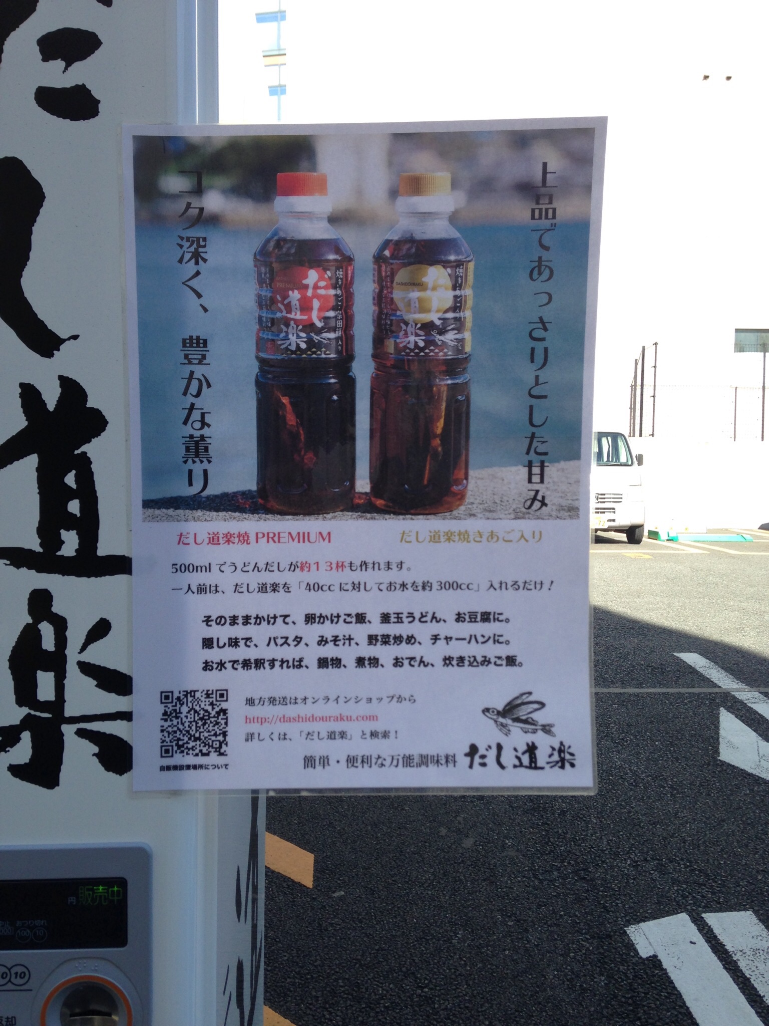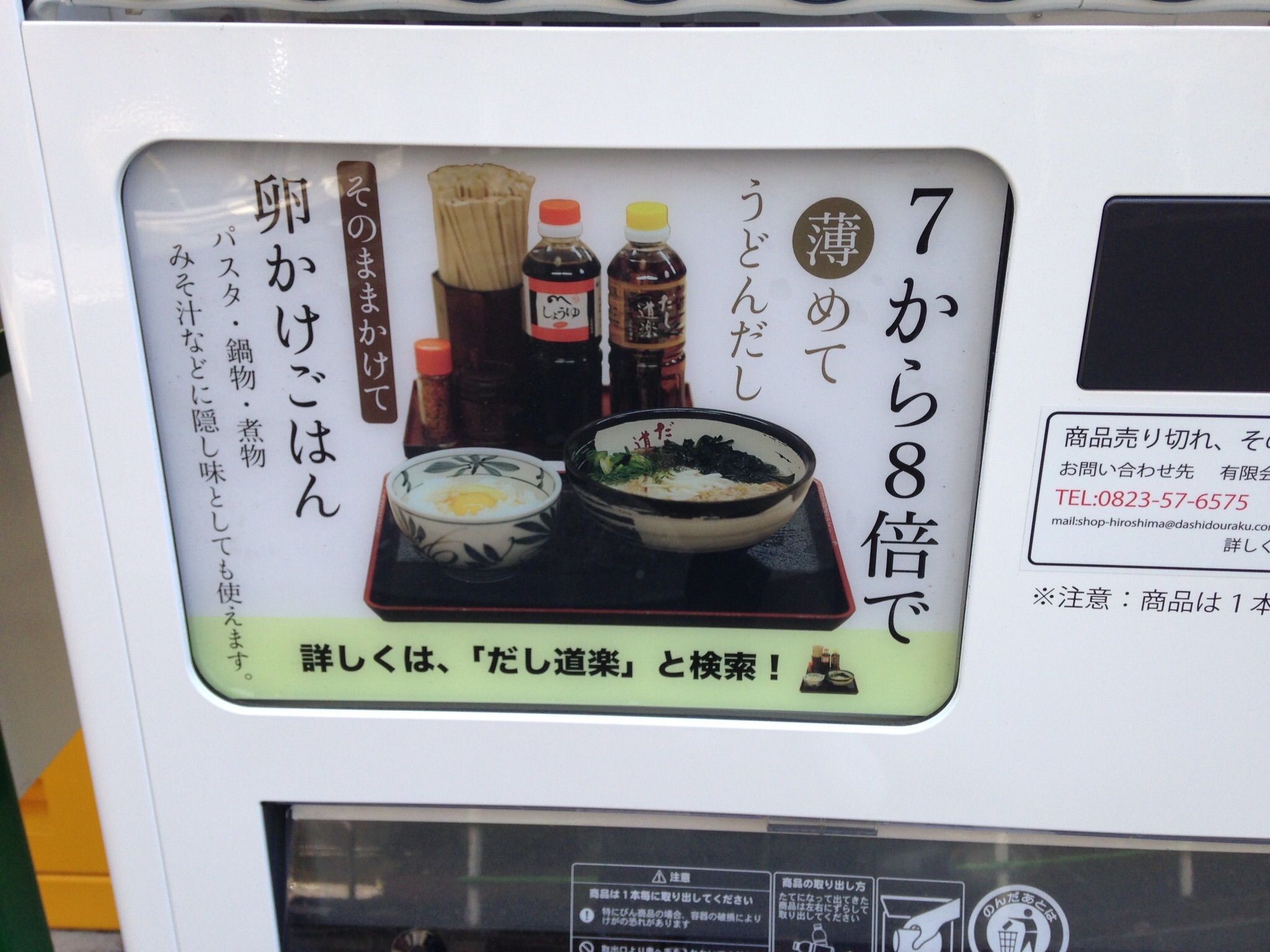 さきほど出汁の自動販売機を見つけましたよ。中川です。