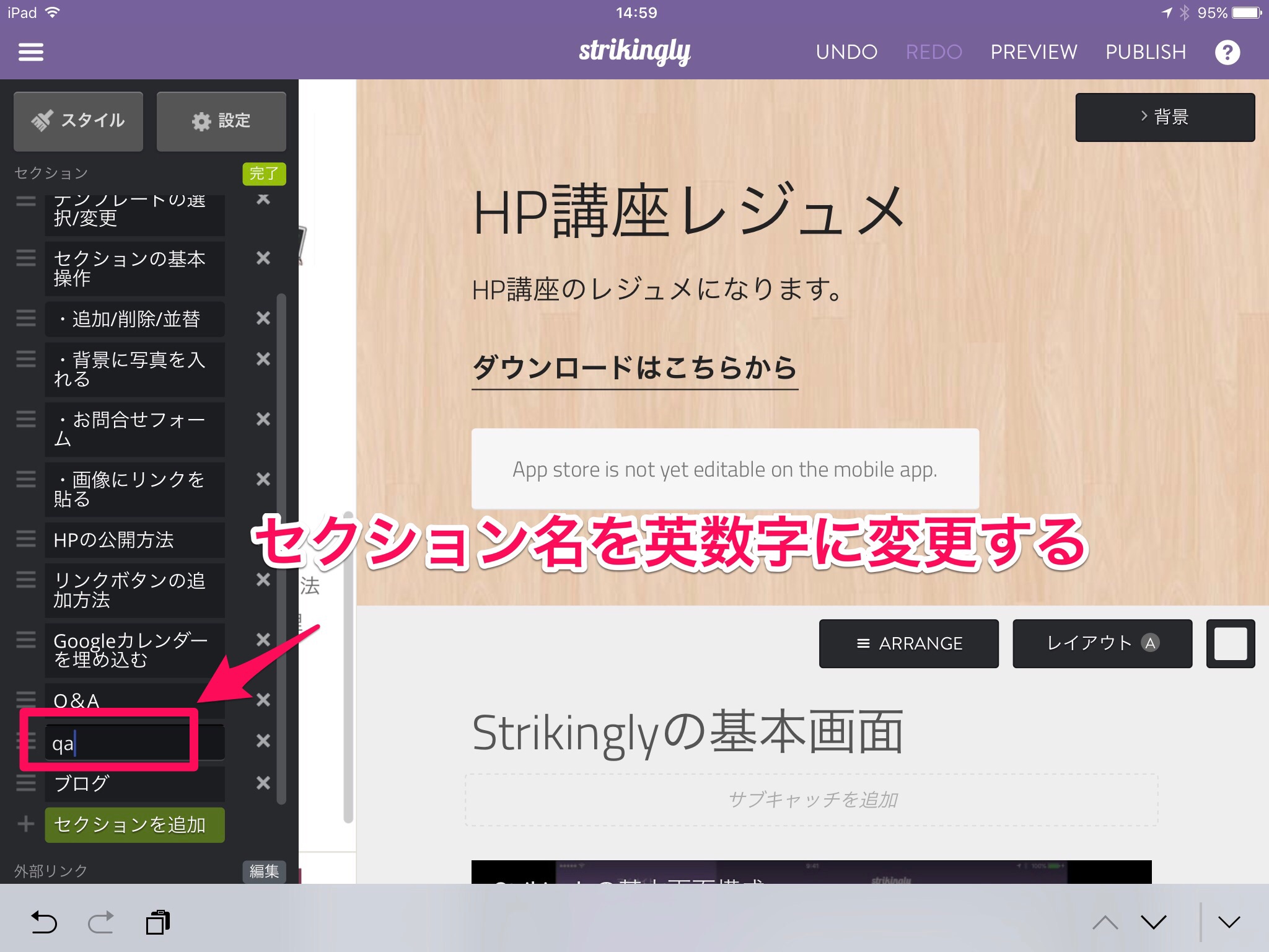 セクション名を英数字にすると、その英数字がURLになるんです。