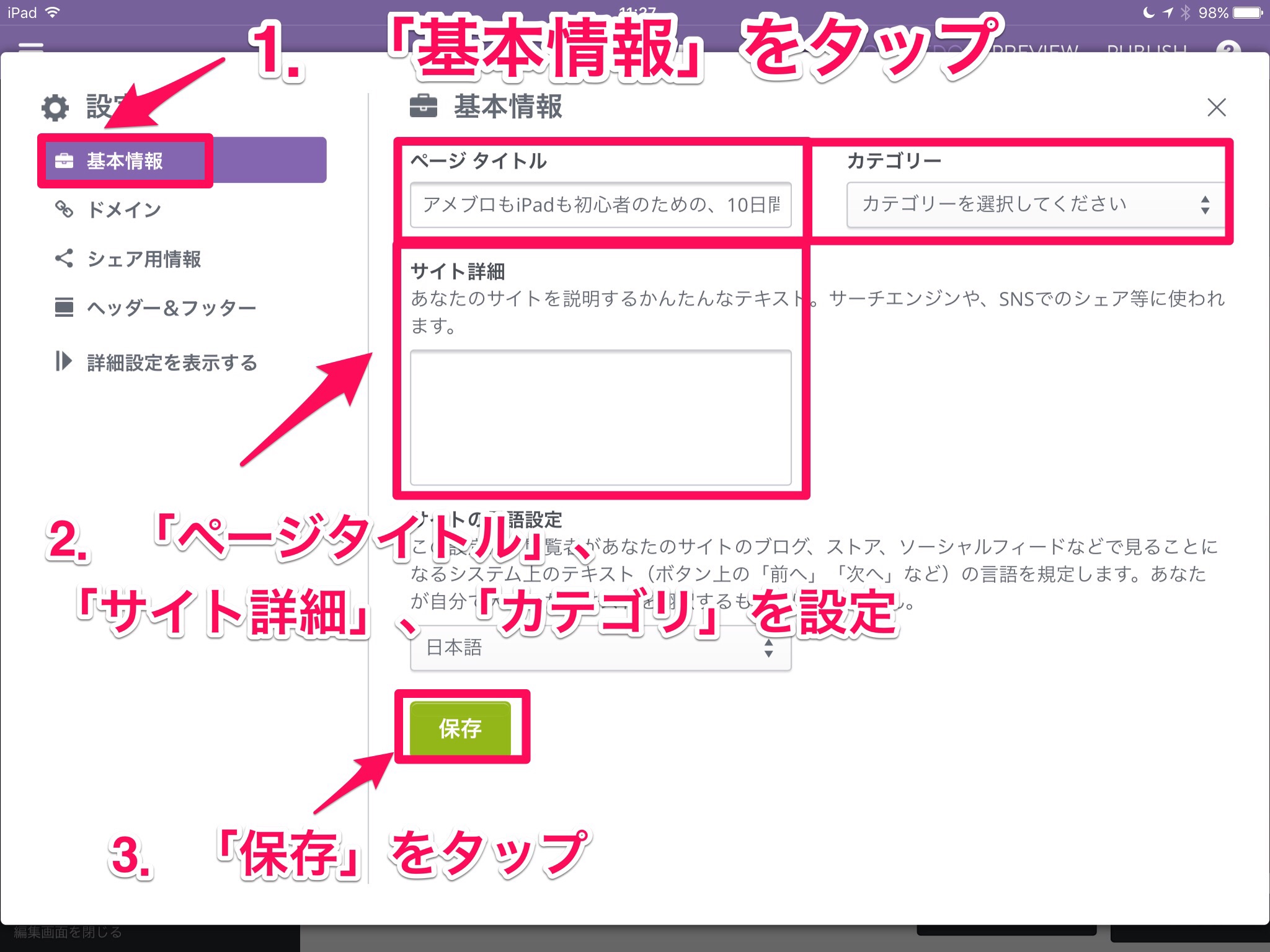 ホームページを公開する時は、タイトルとホームページの説明を記載しておきましょう^^: