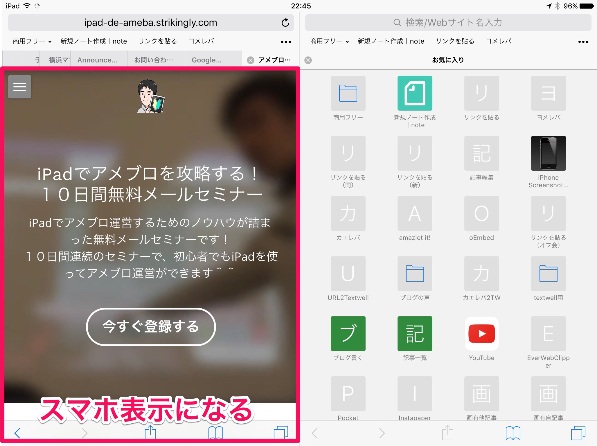 手元にスマホがない時は、iPadでも「スマホ表示」にして確認する事ができますのよ!