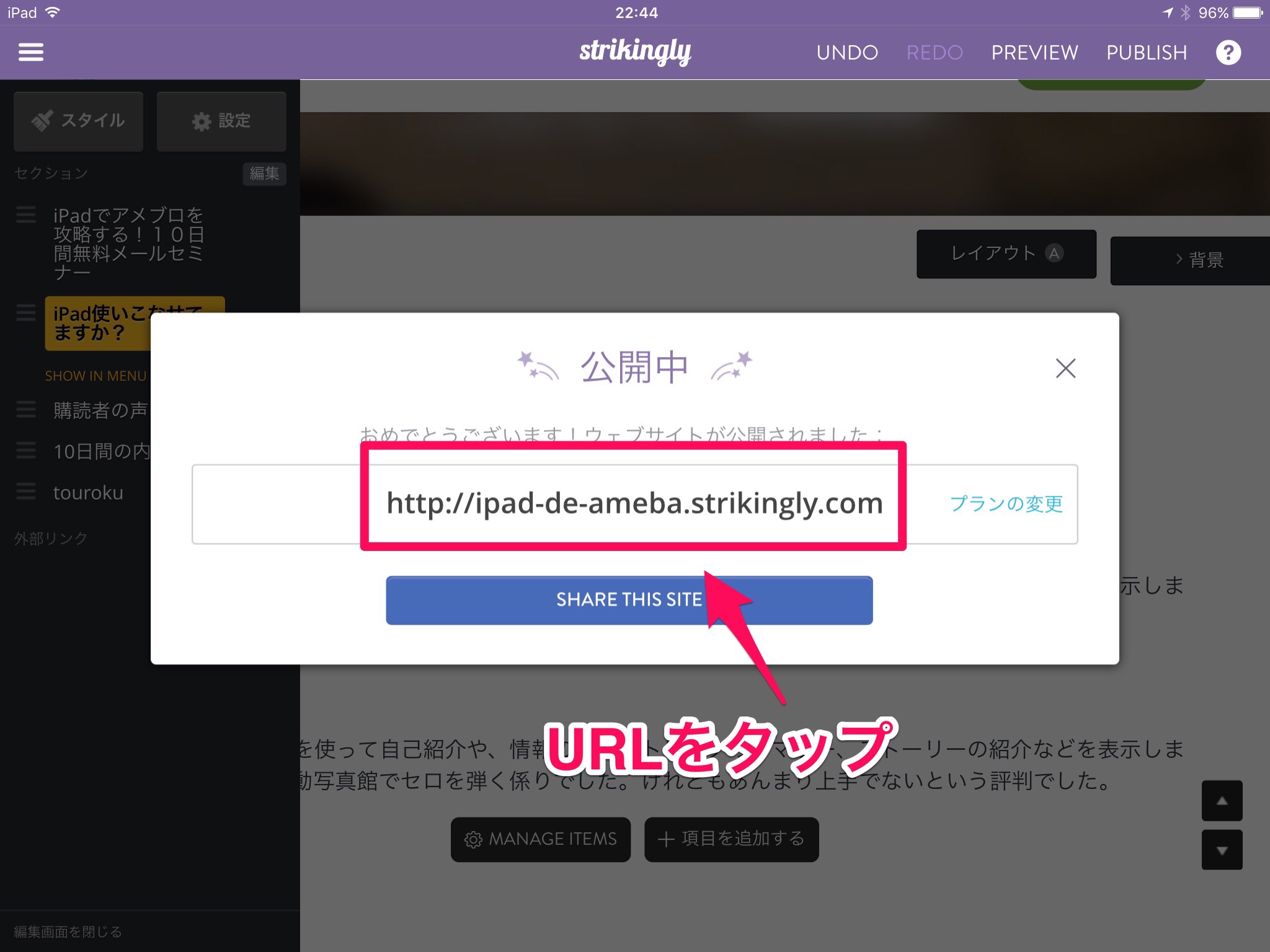 Strikinglyで作ったHP(ホームページ)を公開しよう!