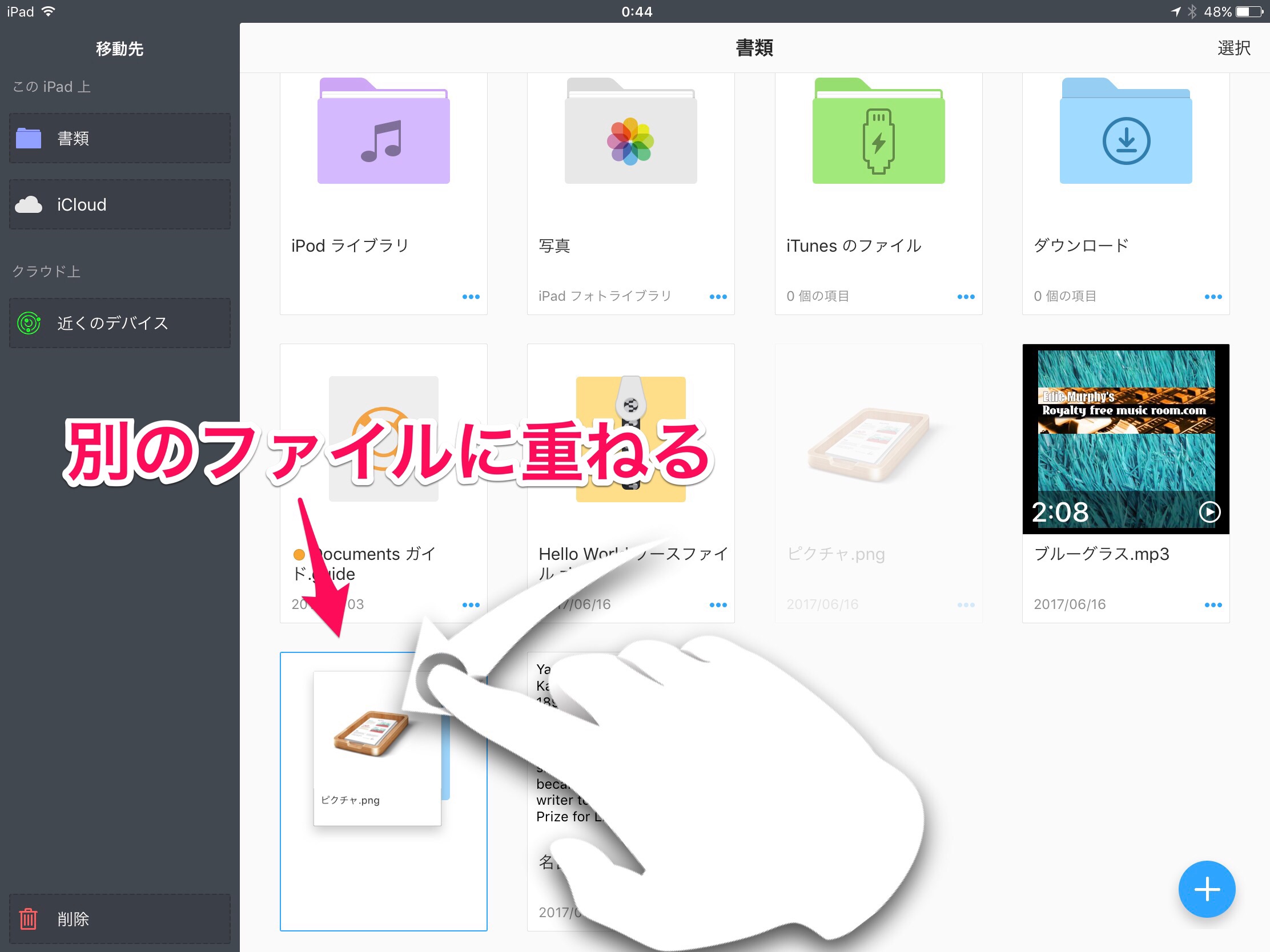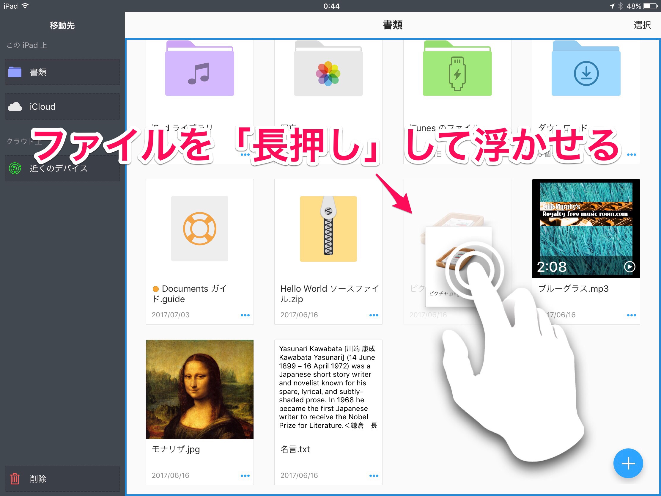 ファイルを長押すると、ちょっと浮きます。