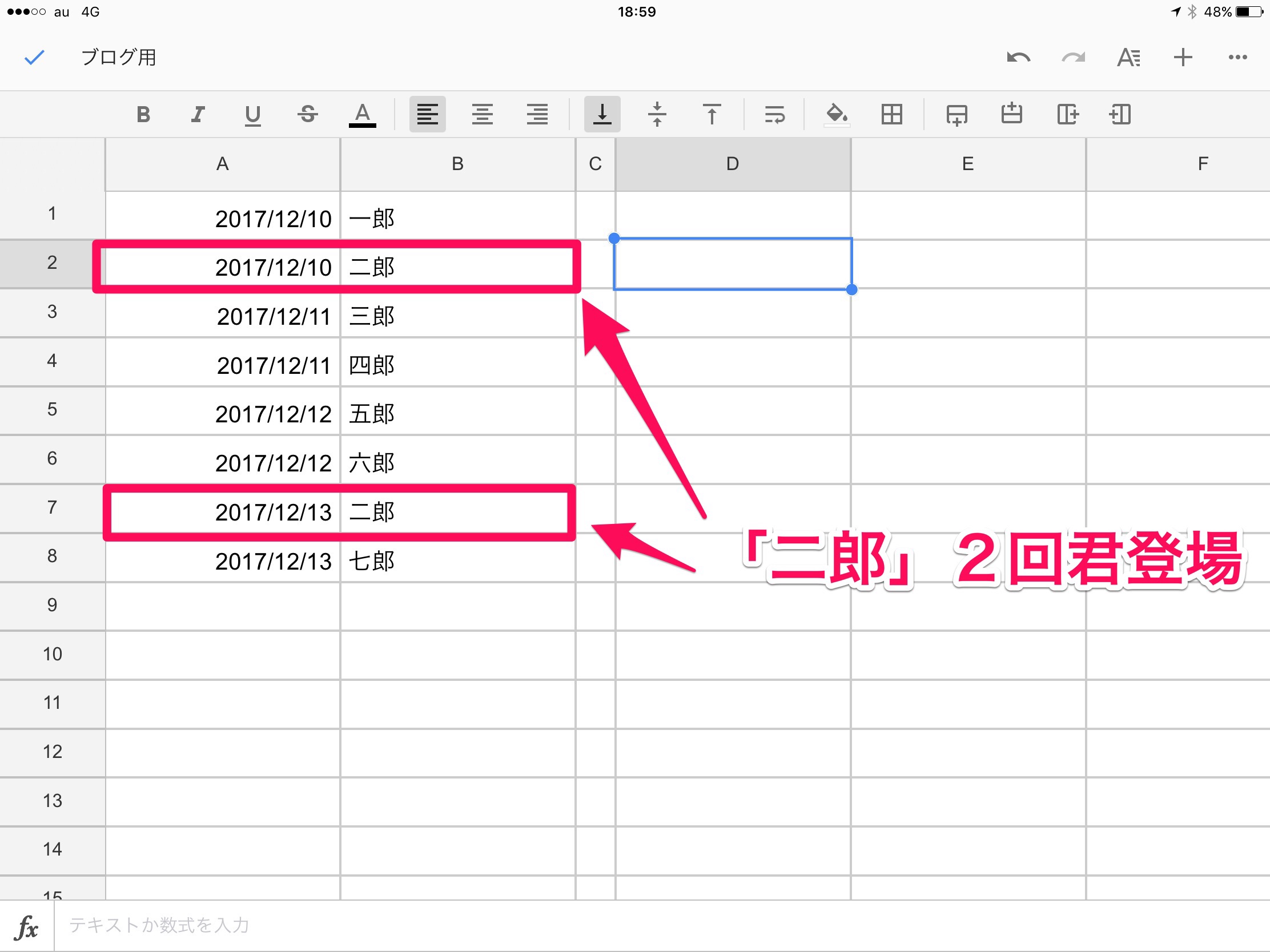 ですので、表にした時に二郎君が2回登場するのは困るわけです。