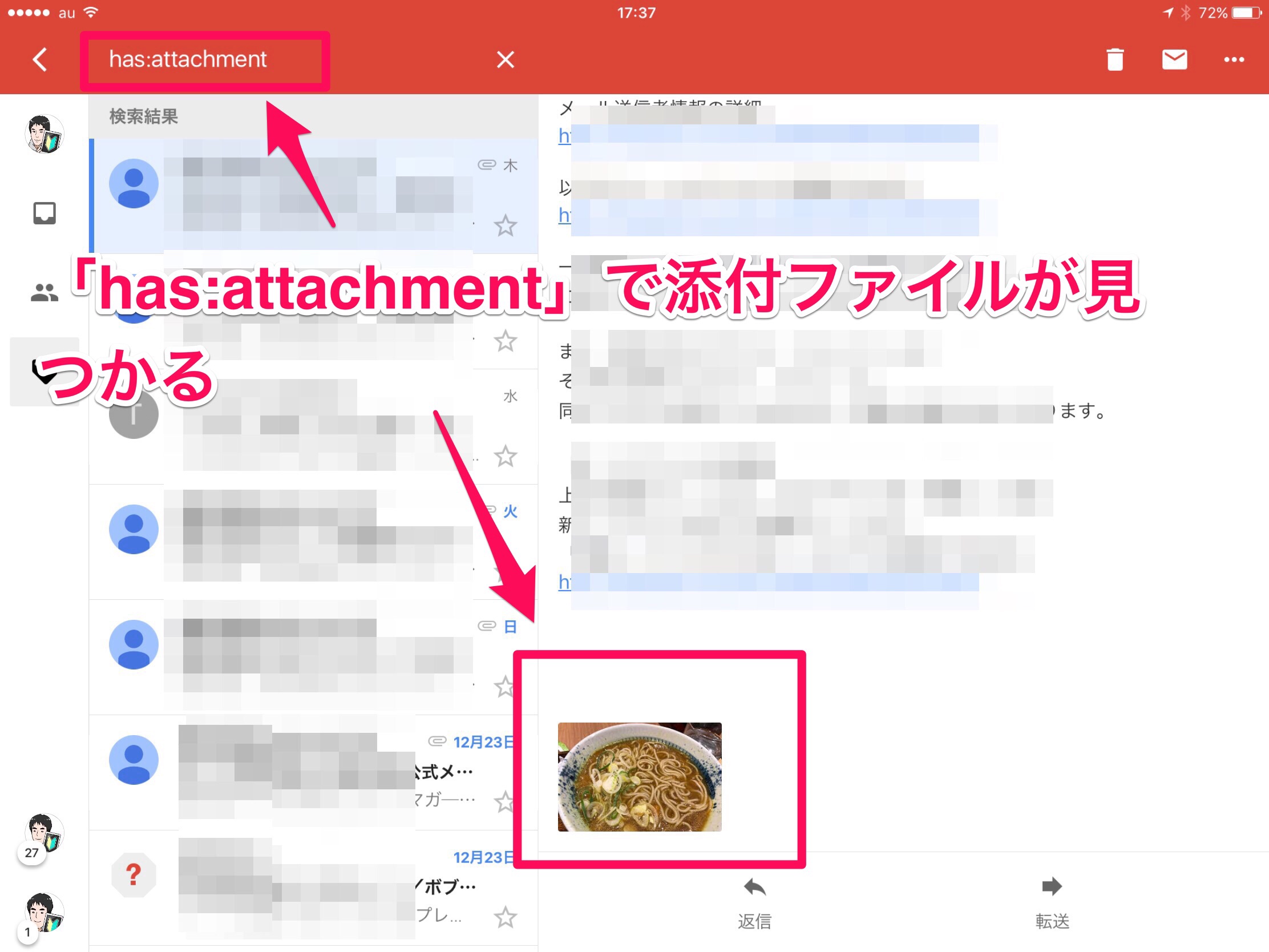 です。写真やPDFなど、あーあの添付ファイル付きのメールどこいったけ?